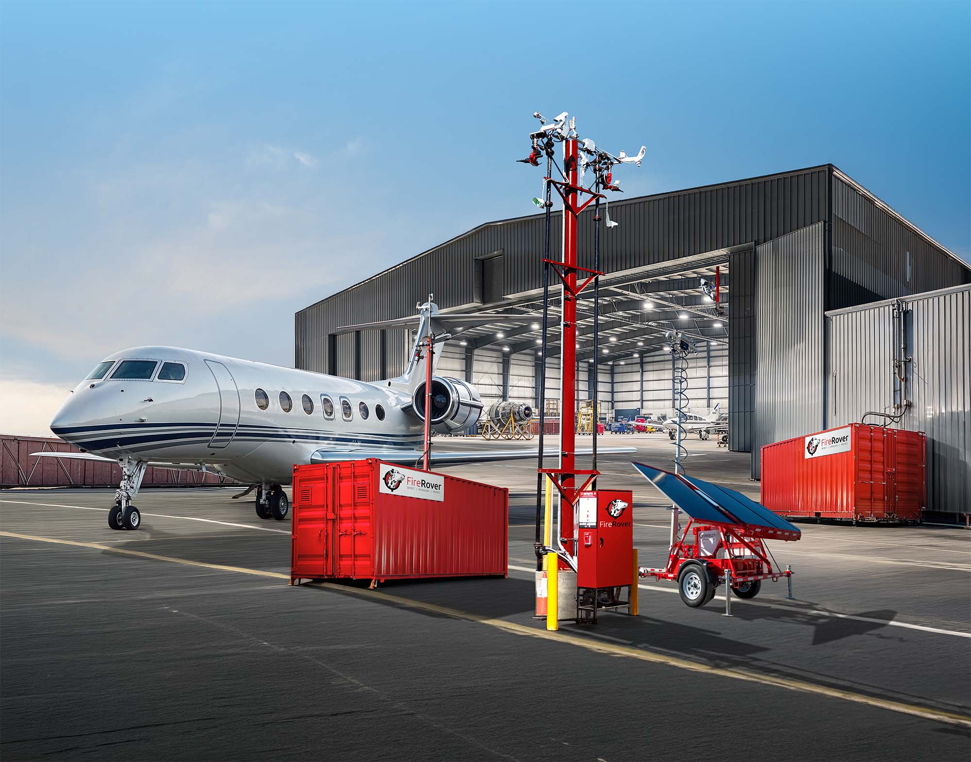 Aircraft hangars represent the highest-consequence fire environment in commercial aviation. Jet fuel, active maintenance operations, and large open volumes create conditions where a small ignition can escalate rapidly. Traditional suppression systems rely on full-scale discharge that impacts every aircraft in the bay. Fire Rover delivers precision detection, human verification, and targeted suppression — protecting high-value aircraft, equipment, and operations before fire spreads.